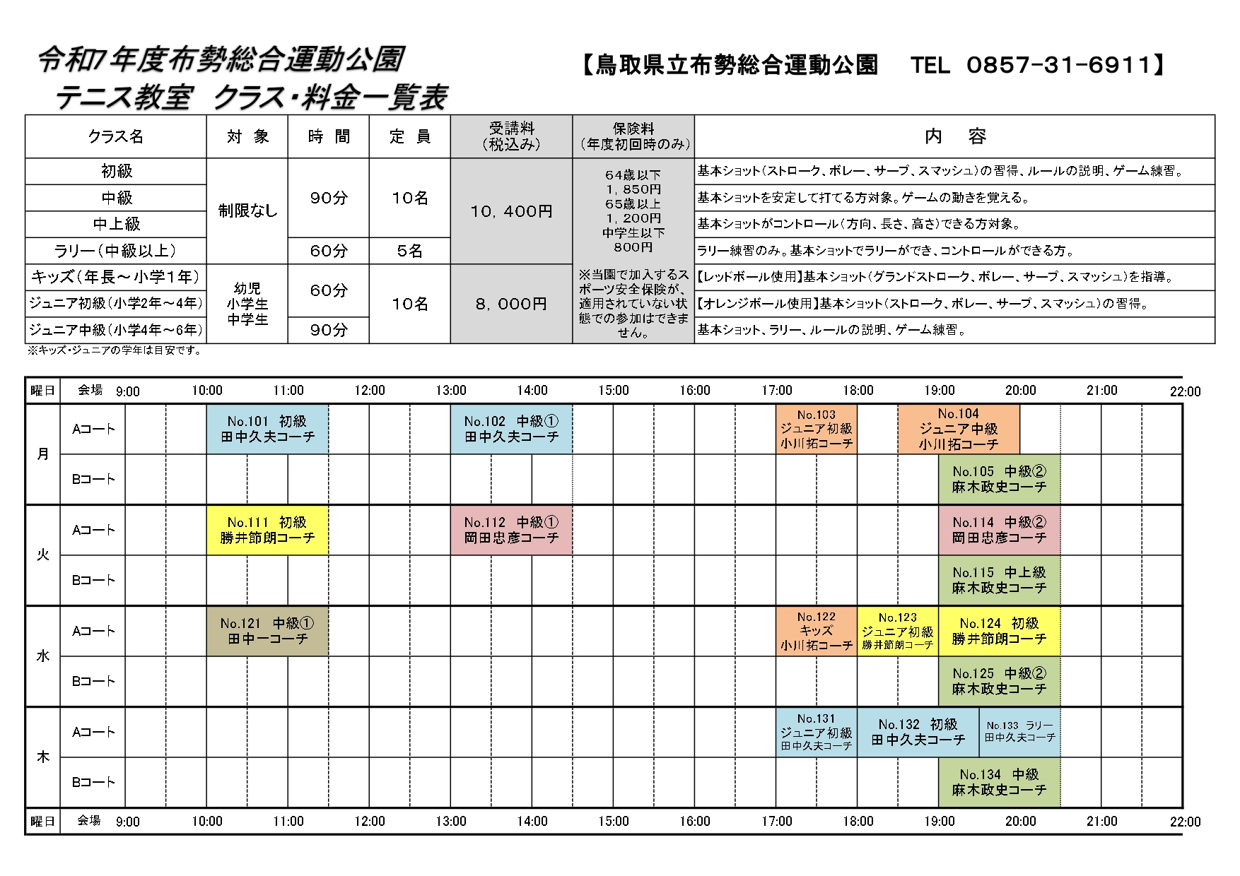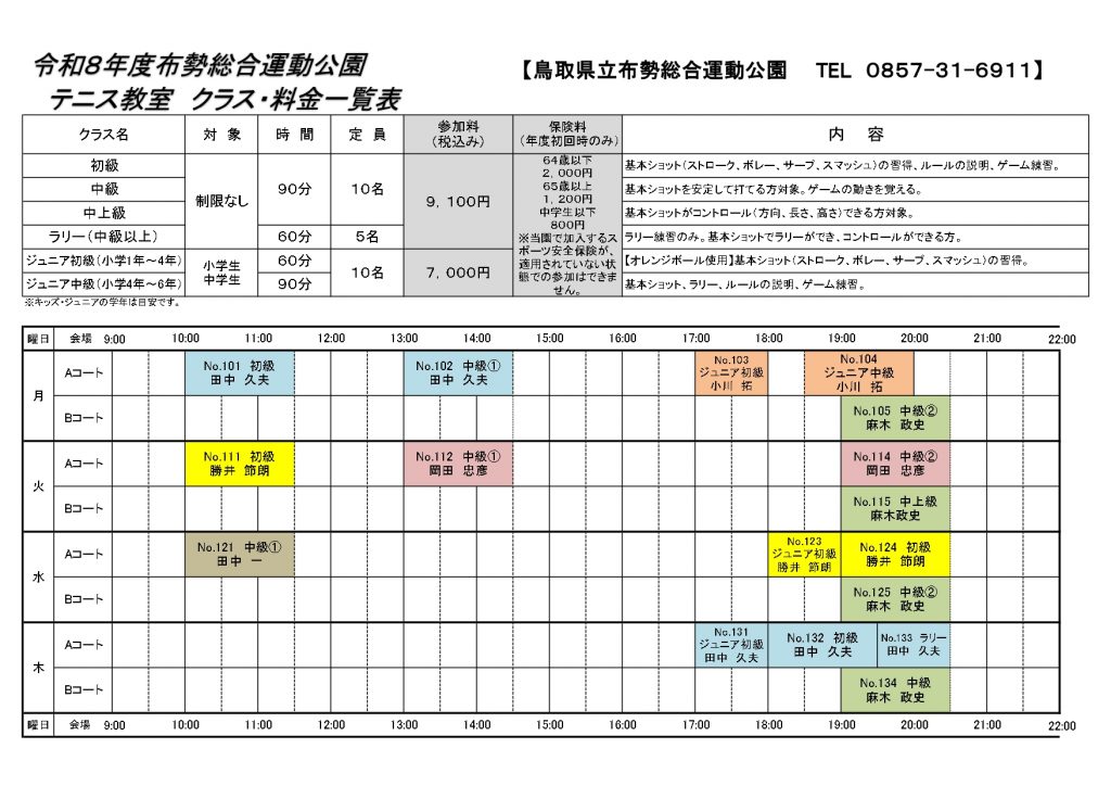 テニス教室は、他のスポーツ教室と参加料や期間が異なりますのでご注意ください。