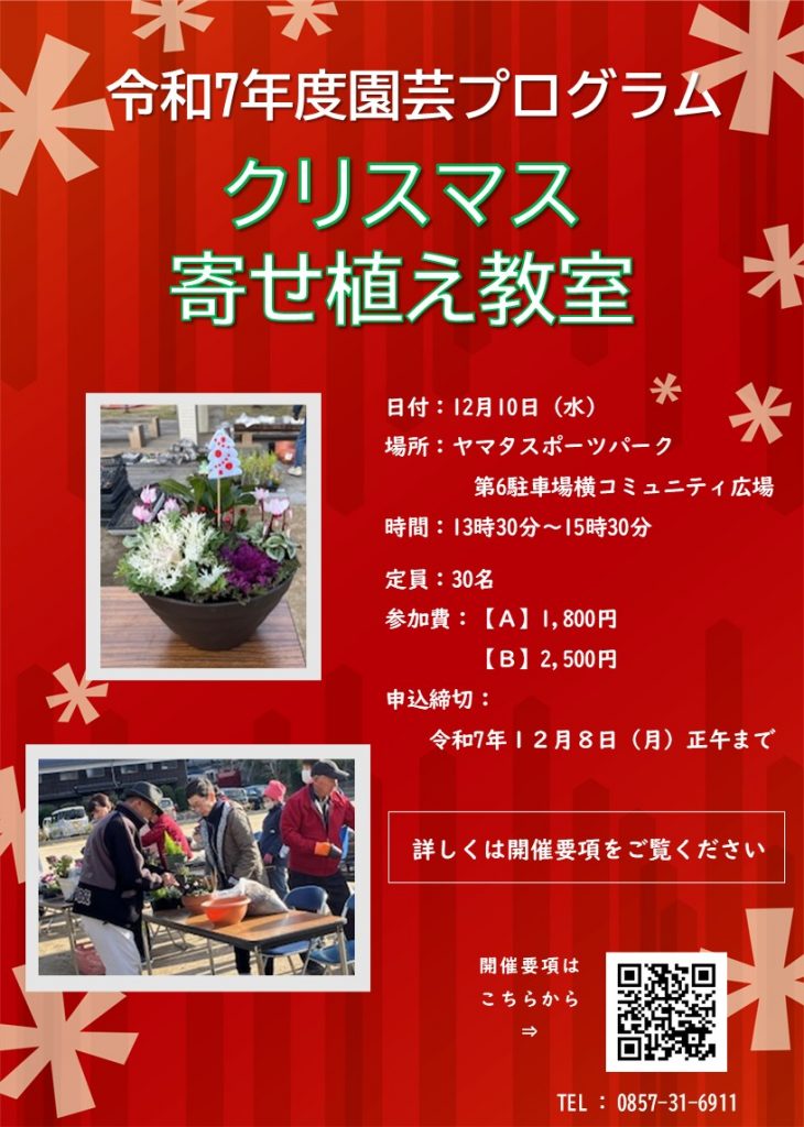 12月10日(水)に開催する「クリスマス寄せ植え教室」の参加者を募集しております。
