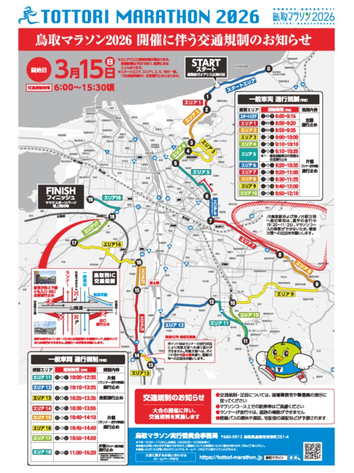 3月15日(日)「鳥取マラソン2026」開催に伴う、交通規制についてお知らせ