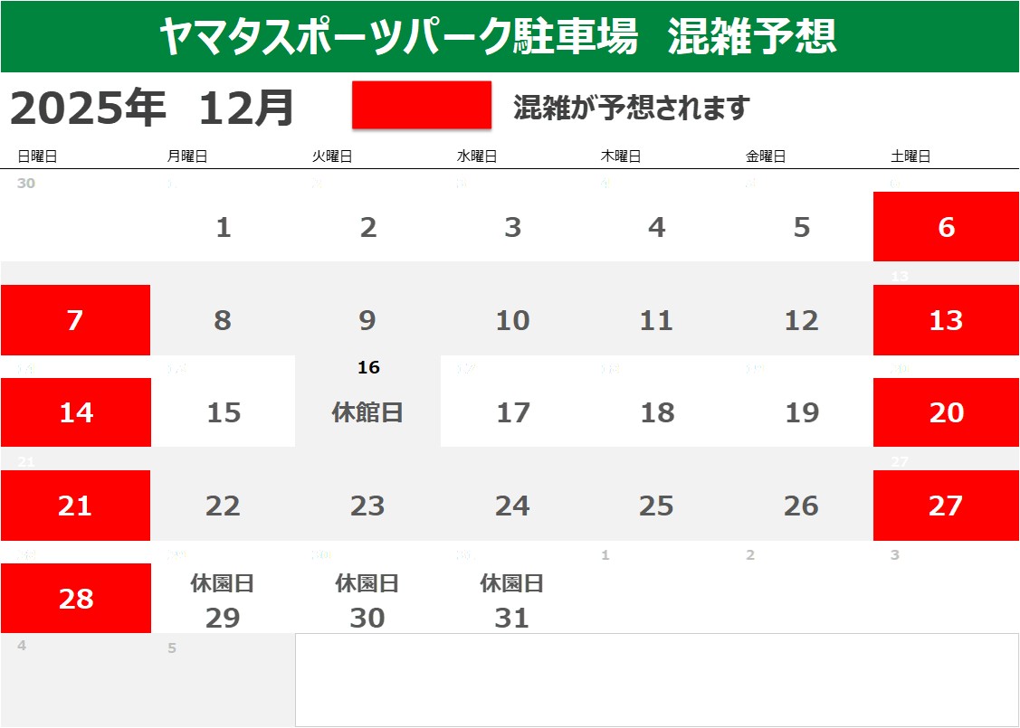大会・イベント等での駐車場の混雑が予想される日程を掲載いたします。